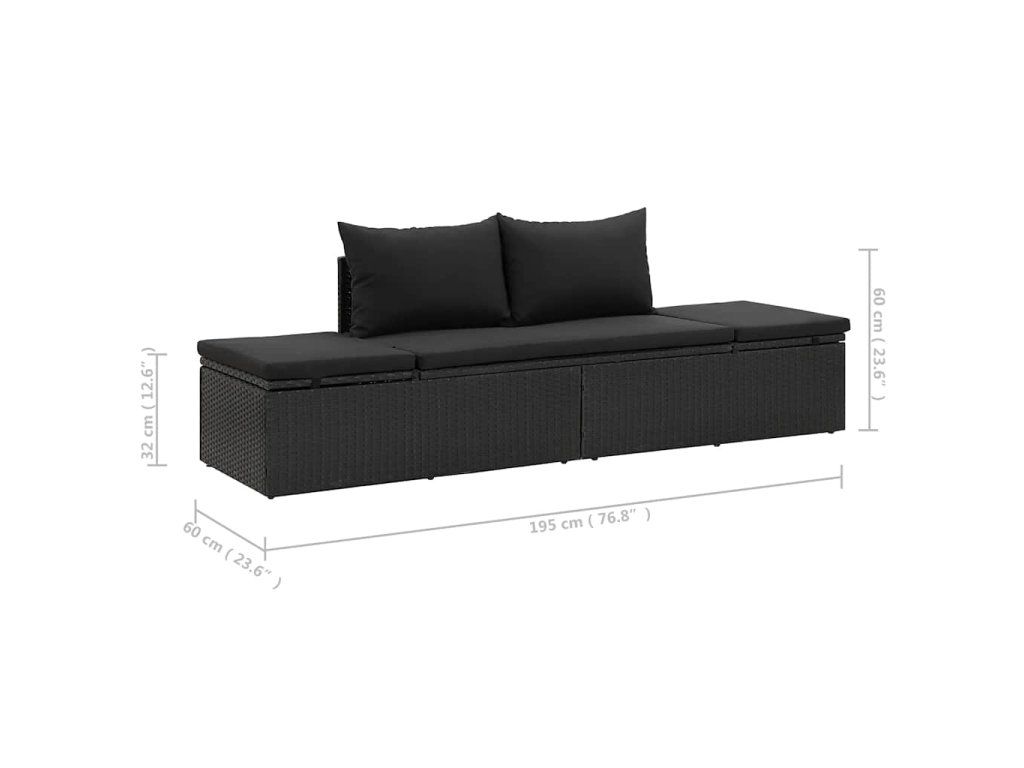 Zahradní lehátko je vyrobené z PE ratanu, který je lehký, voděodolný, snadno se čistí a je vhodný pro venkovní použití během celého roku. Ocelový rám s práškovým nástřikem zajišťuje vysokou stabilitu. Obě strany lehátka je možné vytáhnout nahoru a nastavit do různých úrovní tak, abyste si při sezení či ležení mohli najít tu nejpohodlnější polohu. Silně polstrovaný, odnímatelný sedák a bederní polštáře s pěnovou výplní vám poskytnou maximální pohodlí. Potah podušek lze sejmout pro snadnější praní či údržbu.