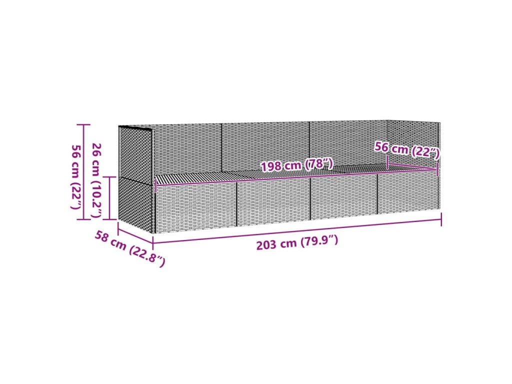 - Rozměry sedáku: 198 x 56 cm (Š x H)
