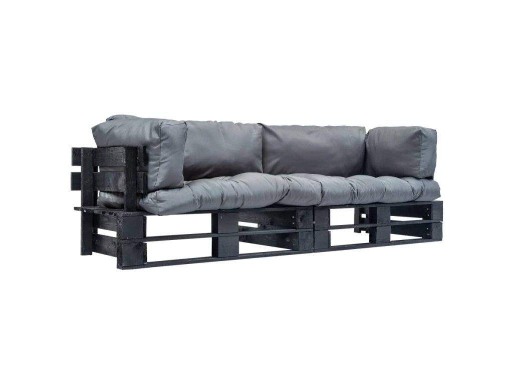 2dílná zahradní pohovka z palet s šedými poduškami borovice 277418