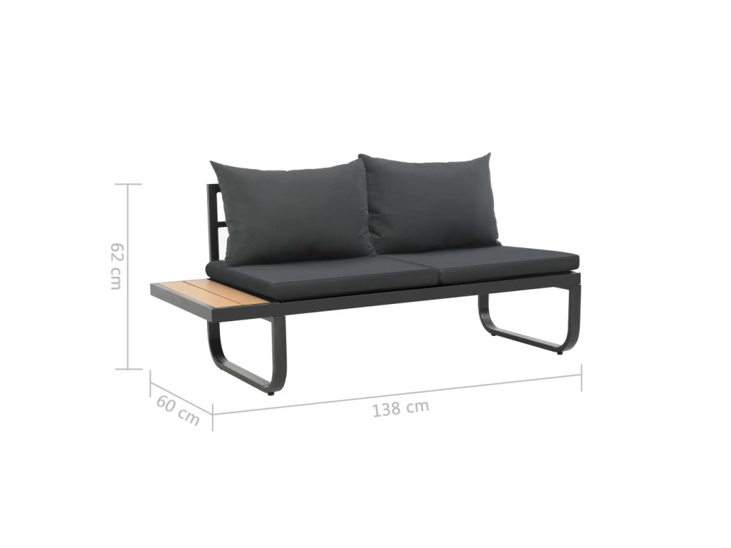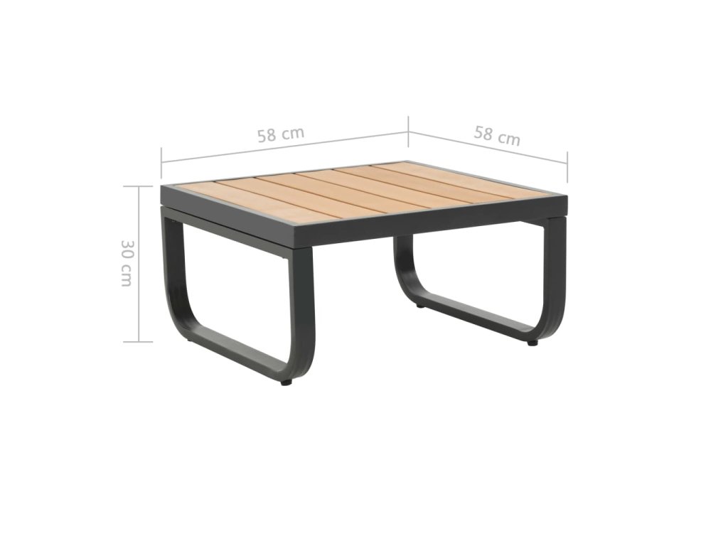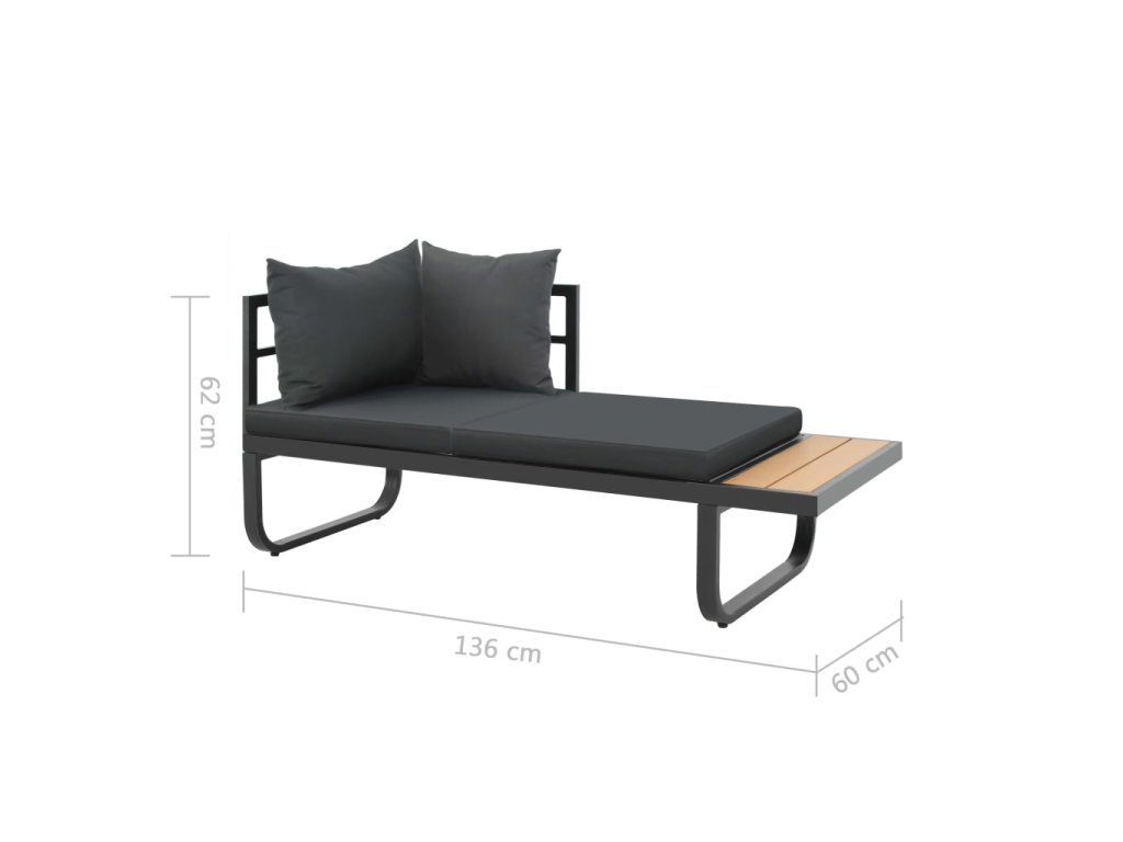 - Materiál sedačky a stolku: hliník a WPC (dřevoplast)
