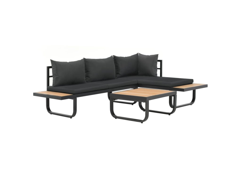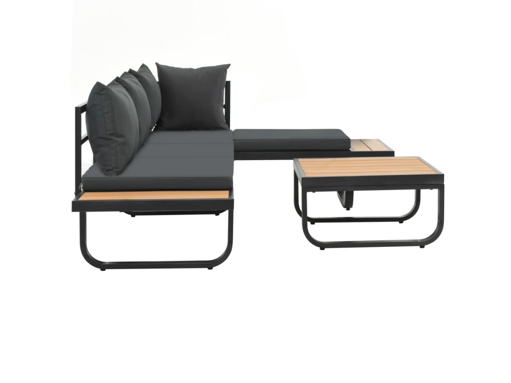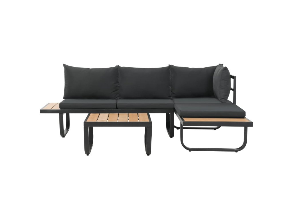2dílná zahradní rohová sedací souprava s poduškami hliník WPC 44704