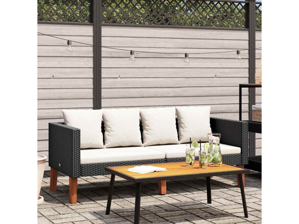 2místná zahradní pohovka s poduškami polyratan černá 310216