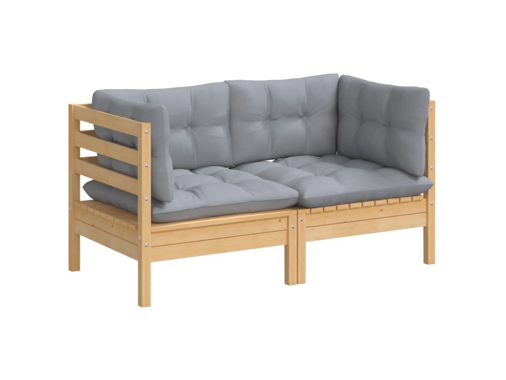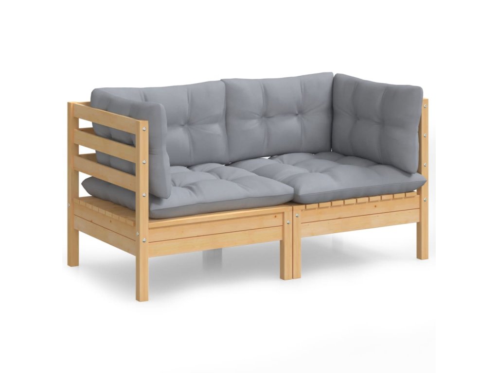 2místná zahradní pohovka s šedými poduškami masivní borovice 3096009