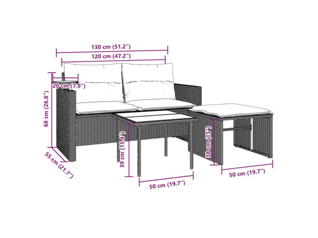 Tato zahradní sedací souprava je dokonalým doplňkem vaší zahrady, terasy nebo dvorku a poskytne vám pohodlné a příjemné místo, kde si můžete povídat s rodinou a přáteli nebo jen tak odpočívat a užívat si pobyt venku.