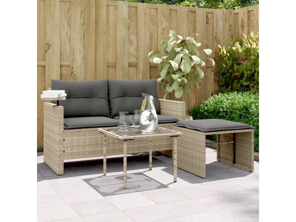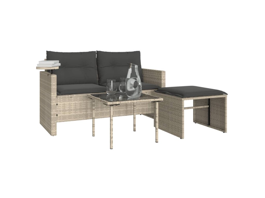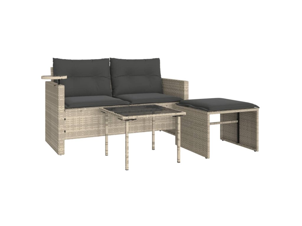3dílná zahradní sedací souprava a podušky světle šedá polyratan 365463