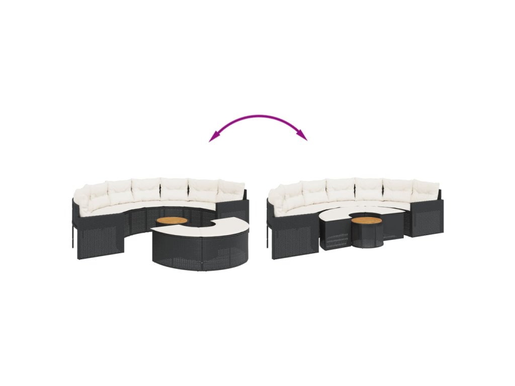3dílná zahradní sedací souprava půlkruhová černá polyratan 3262069