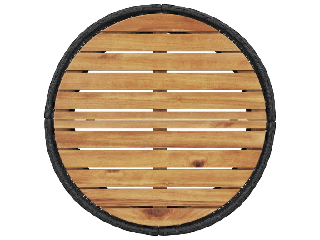 - Materiál: PE ratan, práškově lakovaná ocel, masivní akáciové dřevo s přírodní olejovou povrchovou úpravou