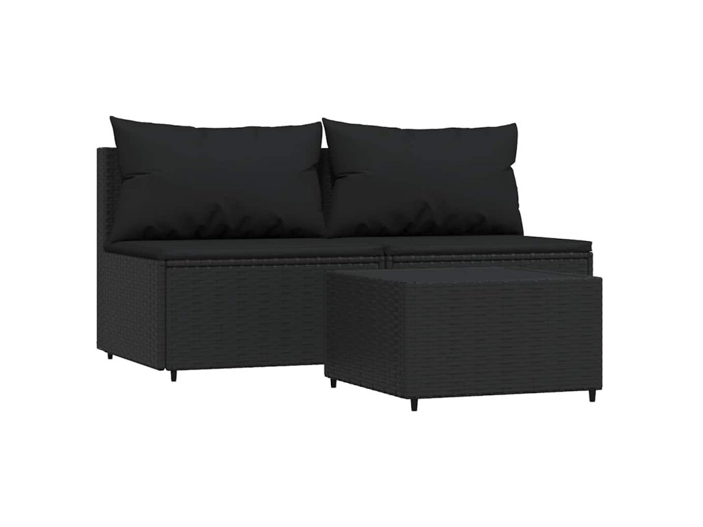 3dílná zahradní sedací souprava s poduškami černá polyratan 319787