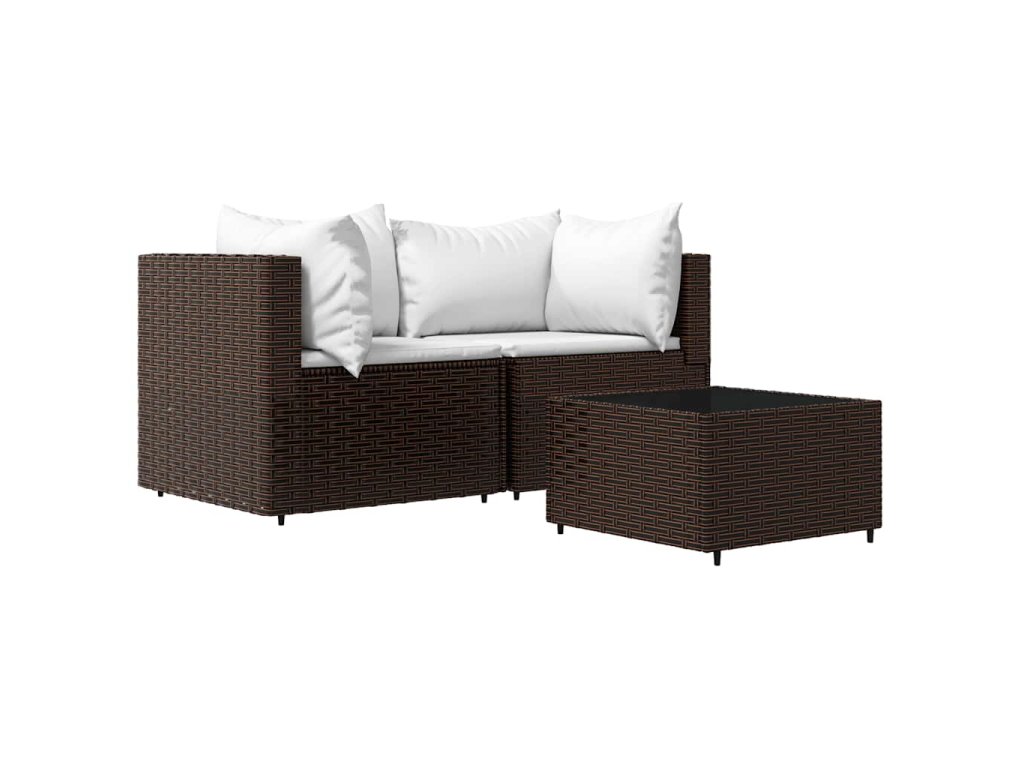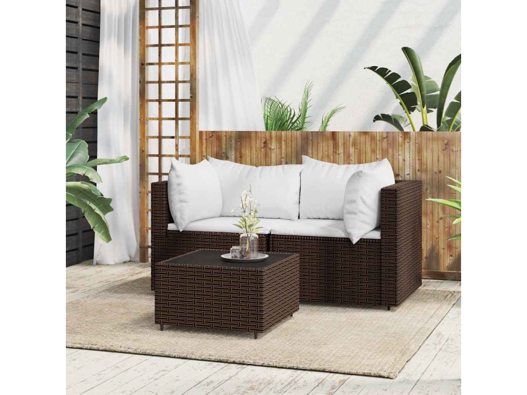 3dílná zahradní sedací souprava s poduškami hnědá polyratan 319747