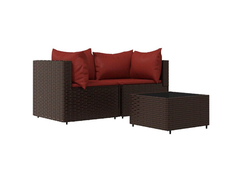 3dílná zahradní sedací souprava s poduškami hnědá polyratan 319811