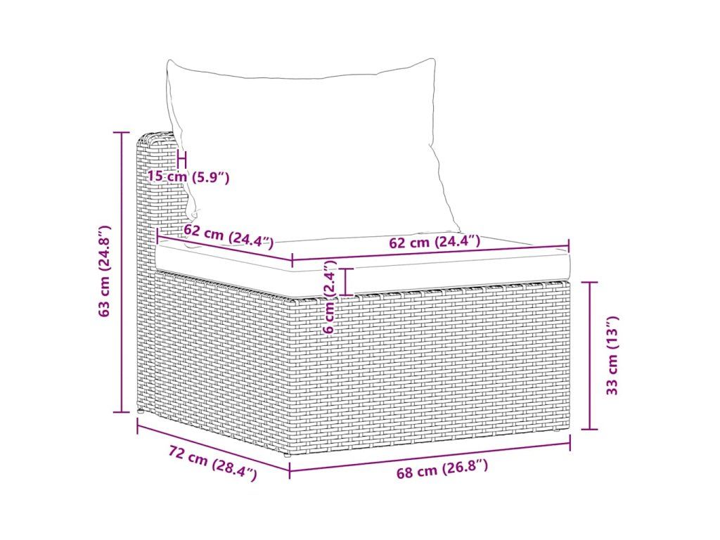 - Rozměry střední pohovky: 68 x 72 x 63 cm (Š x H x V)
