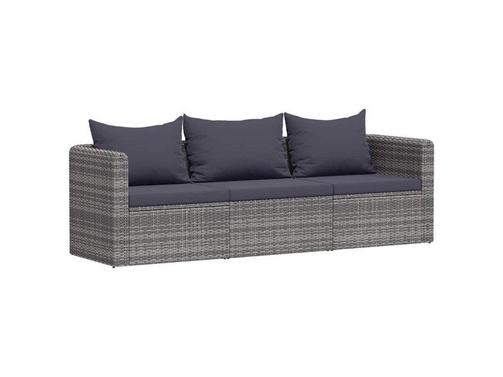 3dílná zahradní sedací souprava s poduškami šedá polyratan 44163