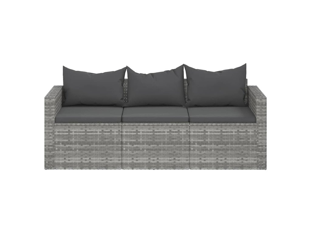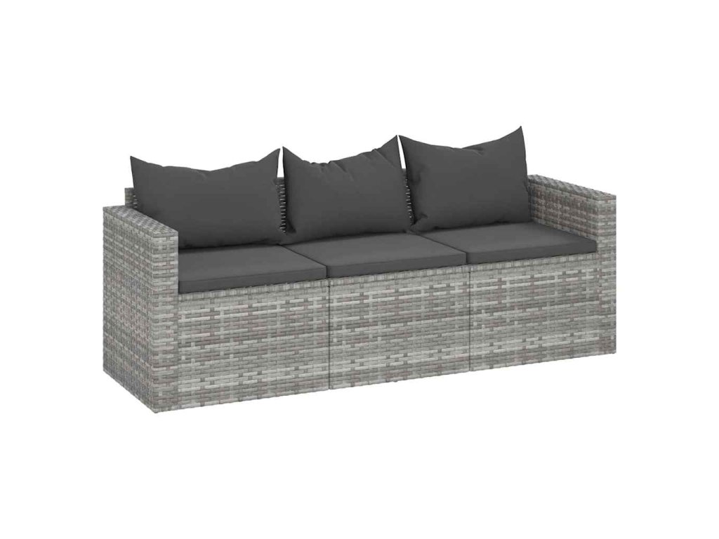 3místná zahradní pohovka s poduškami šedá polyratan 362328