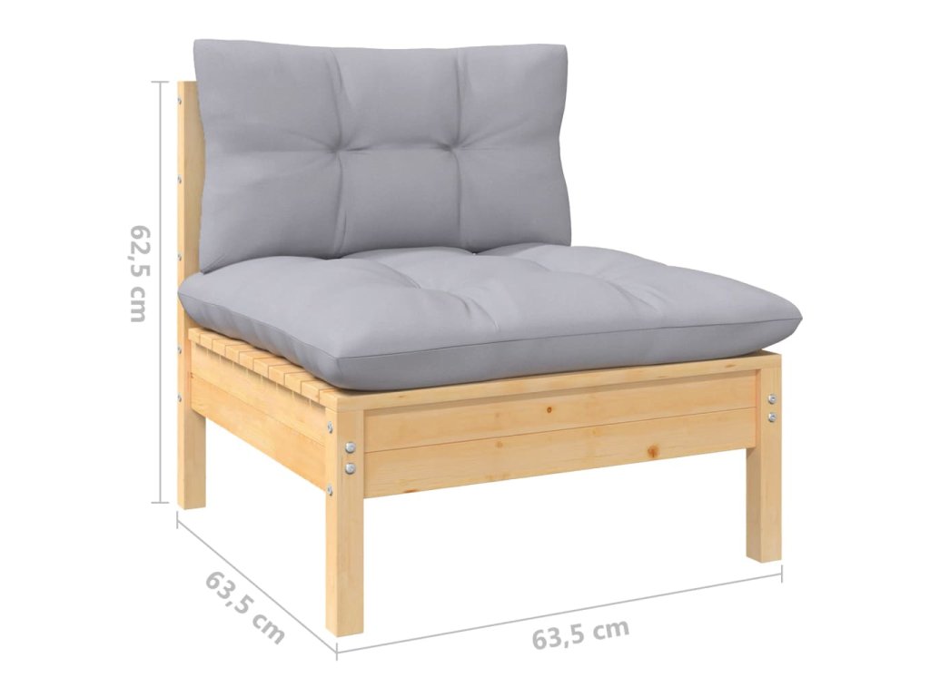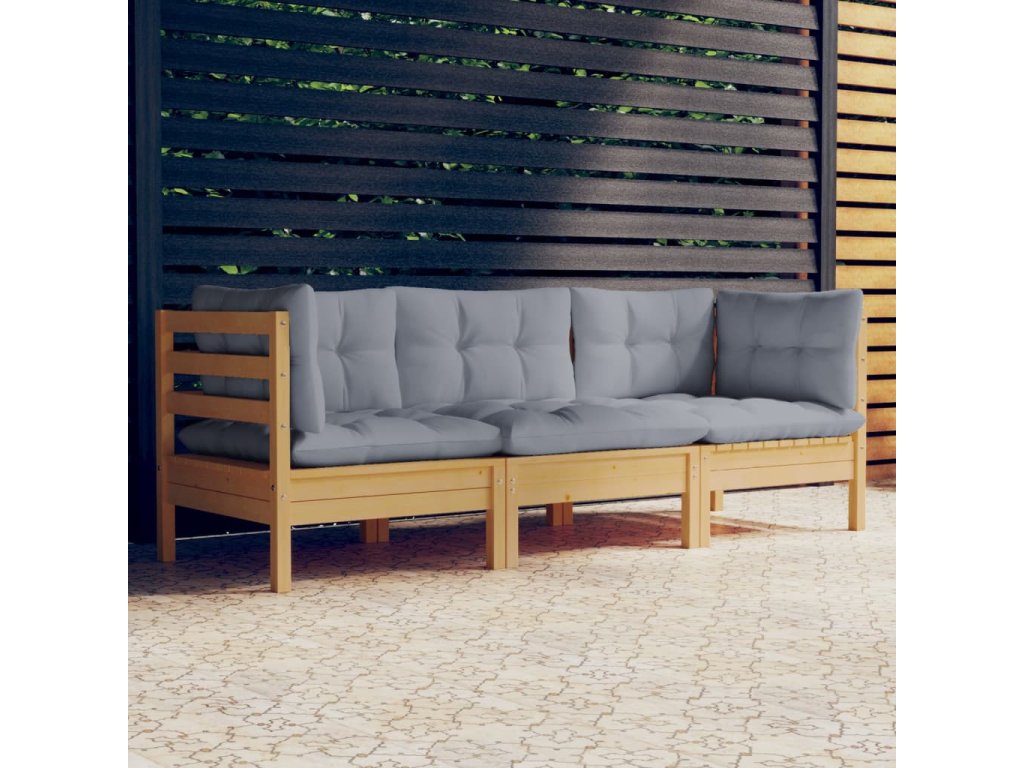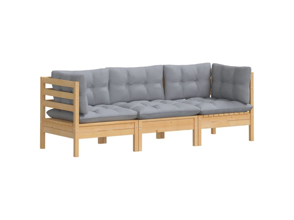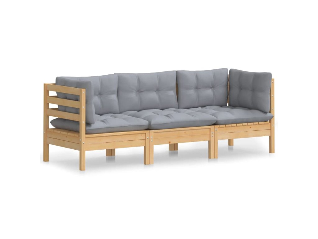 3místná zahradní pohovka s šedými poduškami masivní borovice 3096099