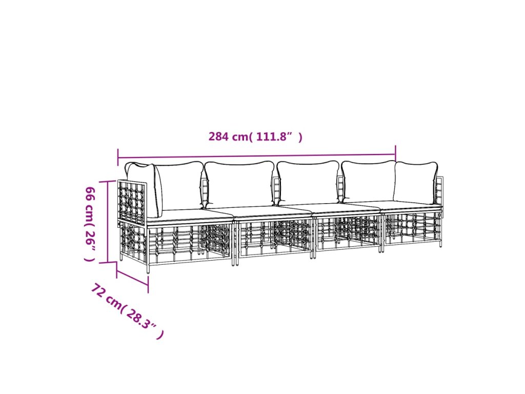4dílná zahradní sedací souprava s poduškami antracit polyratan 3186699
