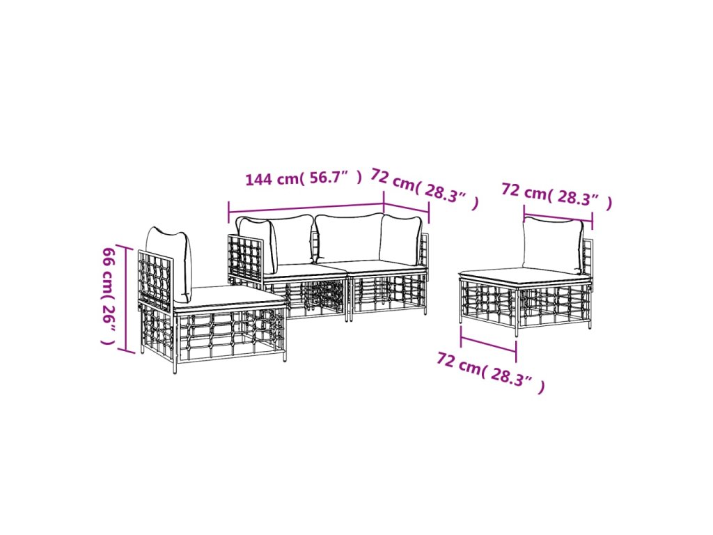 4dílná zahradní sedací souprava s poduškami antracit polyratan 3186712