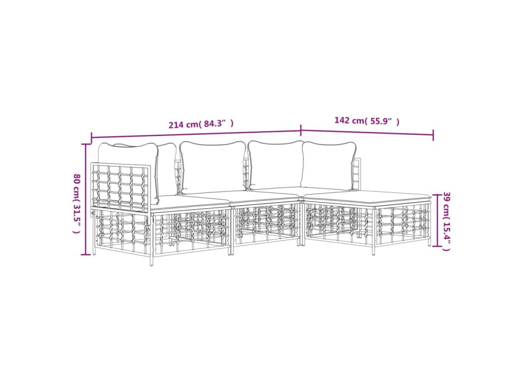 4dílná zahradní sedací souprava s poduškami antracit polyratan 3186738