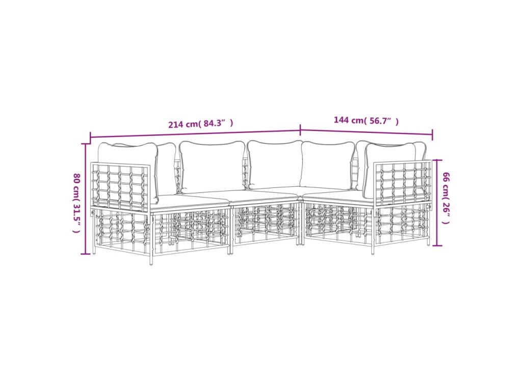 4dílná zahradní sedací souprava s poduškami antracit polyratan 3186746