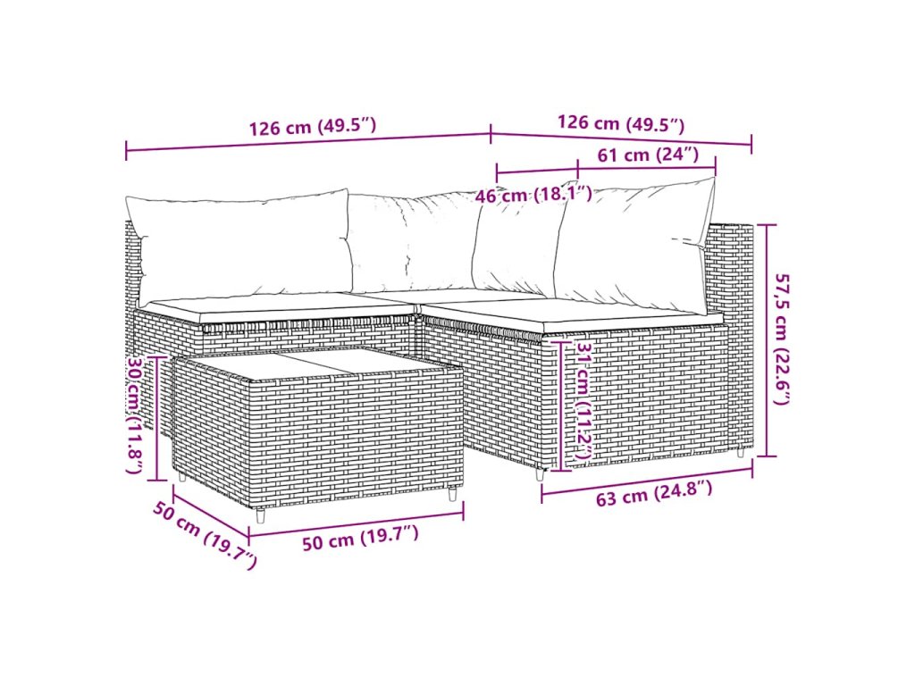 4dílná zahradní sedací souprava s poduškami hnědá polyratan 319749
