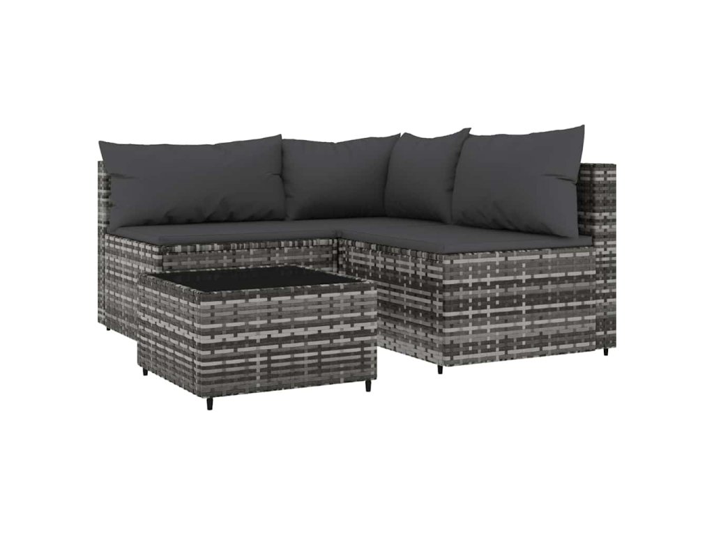 4dílná zahradní sedací souprava s poduškami šedá polyratan 319765