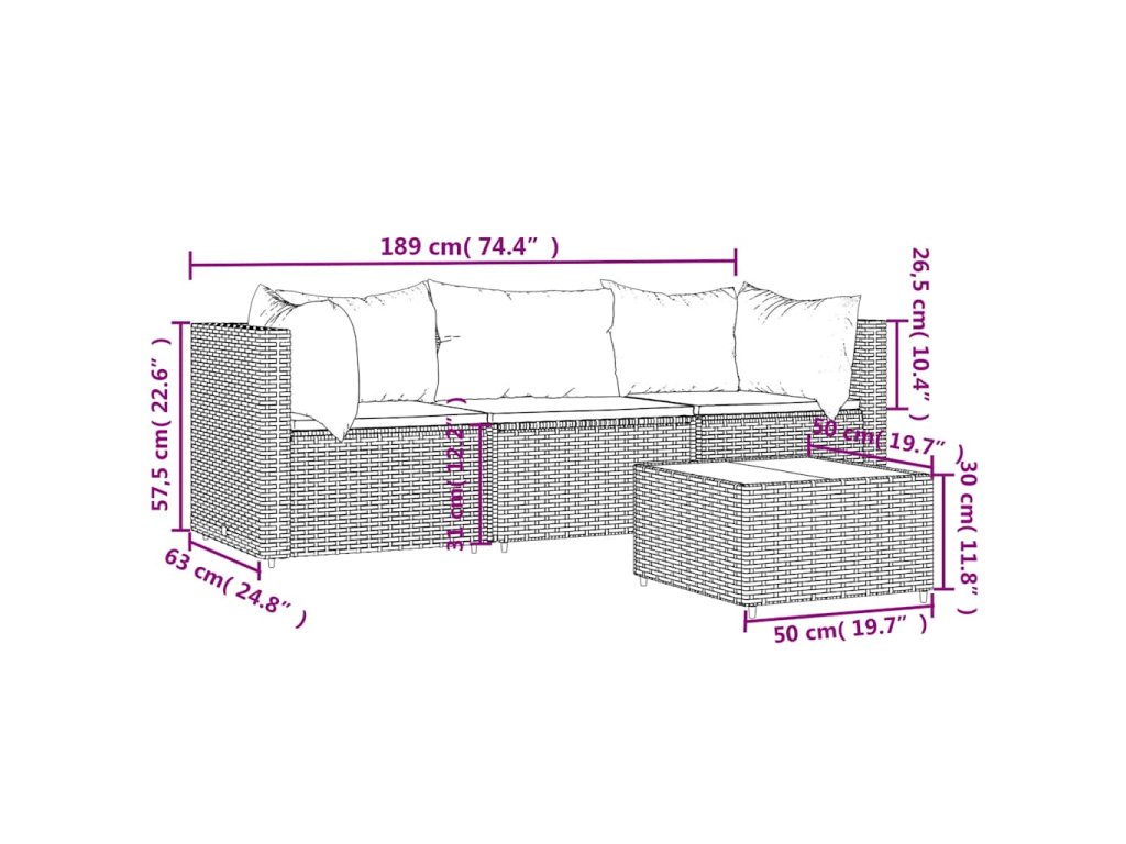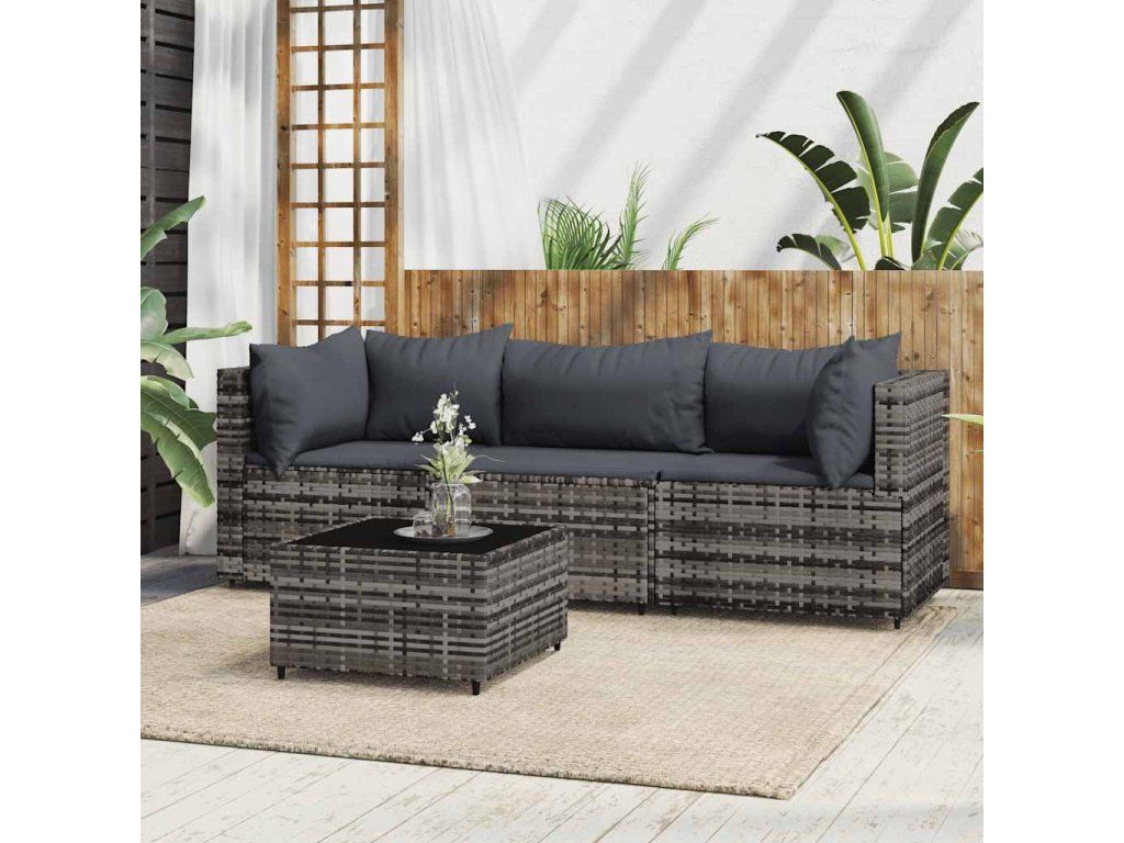4dílná zahradní sedací souprava s poduškami šedá polyratan 319767