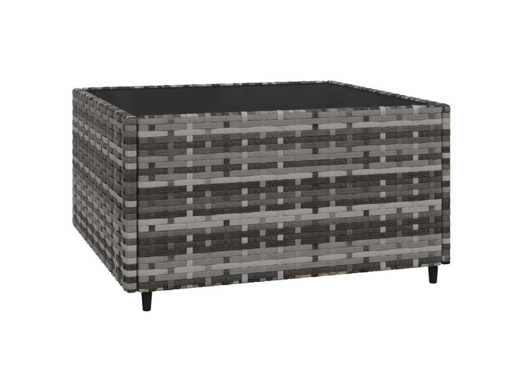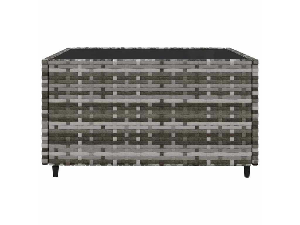 - Materiál: PE ratan, práškově lakovaná ocel, tkanina (100% polyester), tvrzené sklo