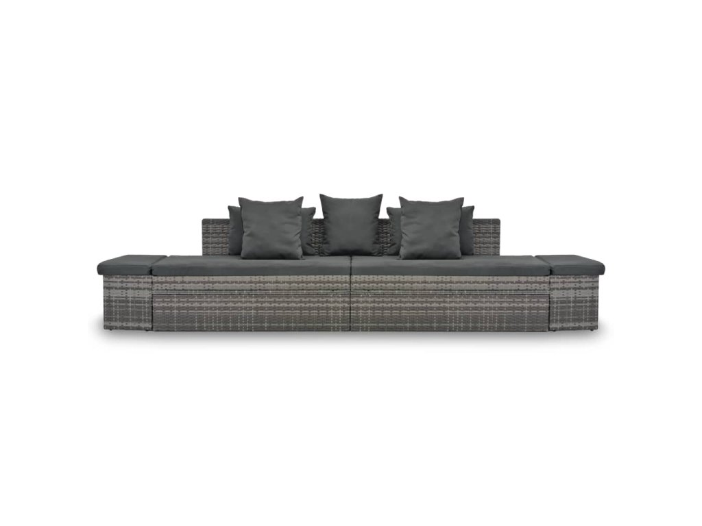 Tato polyratanová sedací souprava sestává ze 2 pohovek, 2 lehátek, 5 polštářů a 2 podušek na sedáky. Poskytne vám tak báječné místo s příjemnou atmosférou, kde si můžete užívat neopakovatelné chvíle s rodinou a přáteli. Lehátka se dají přesouvat, takže si sedací soupravu můžete přestavět do různých konfigurací.