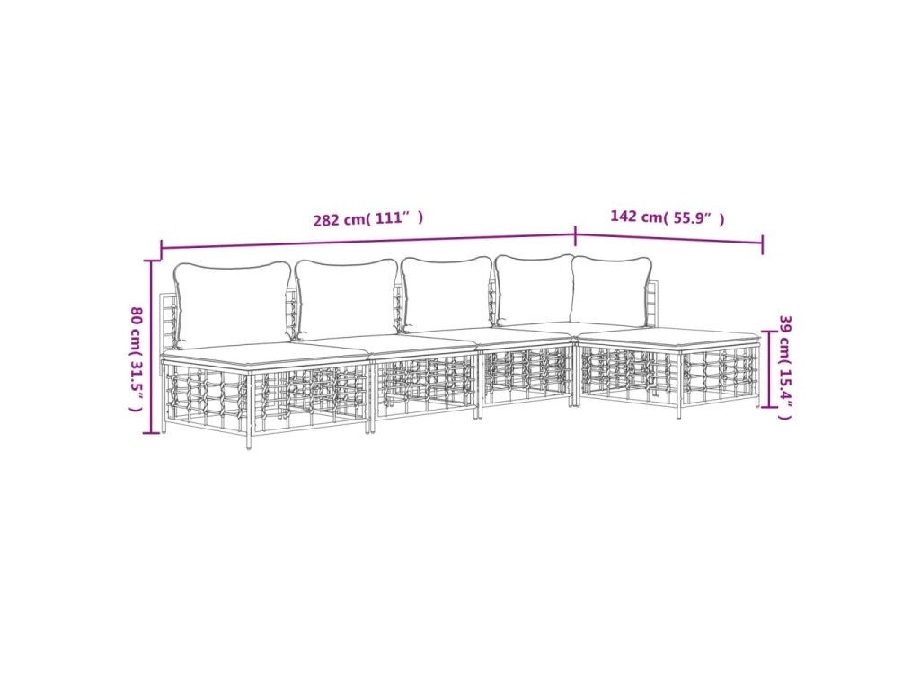 5dílná zahradní sedací souprava s poduškami antracit polyratan 3186734