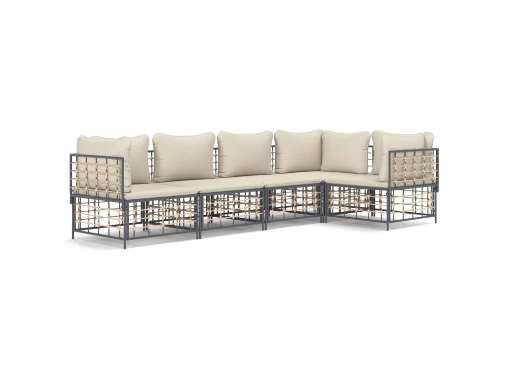 5dílná zahradní sedací souprava s poduškami antracit polyratan 3186750