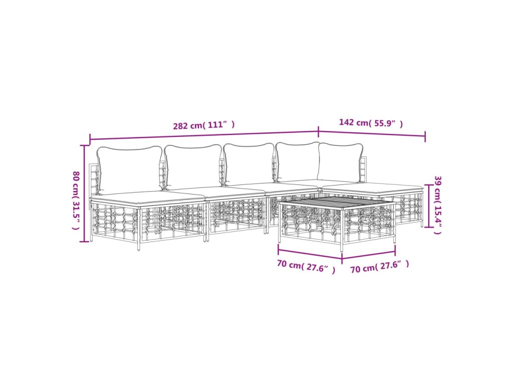 6dílná zahradní sedací souprava s poduškami antracit polyratan 3186736