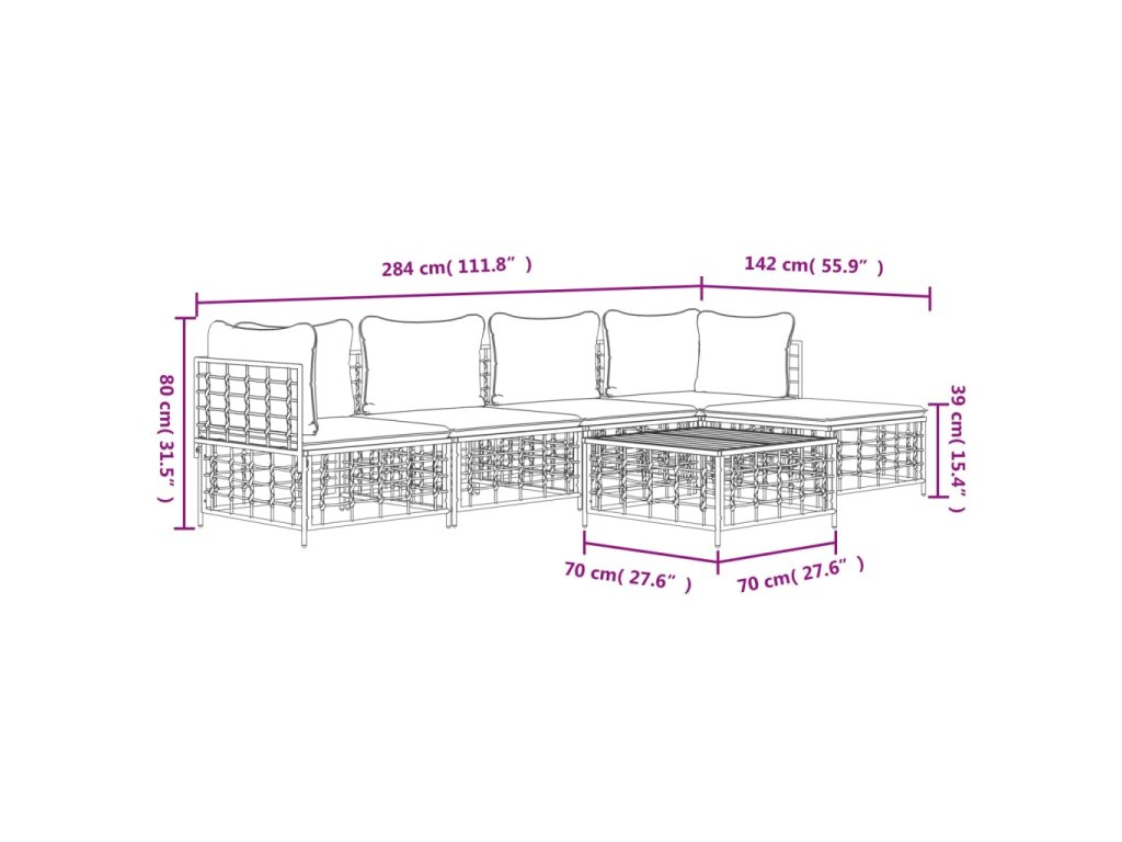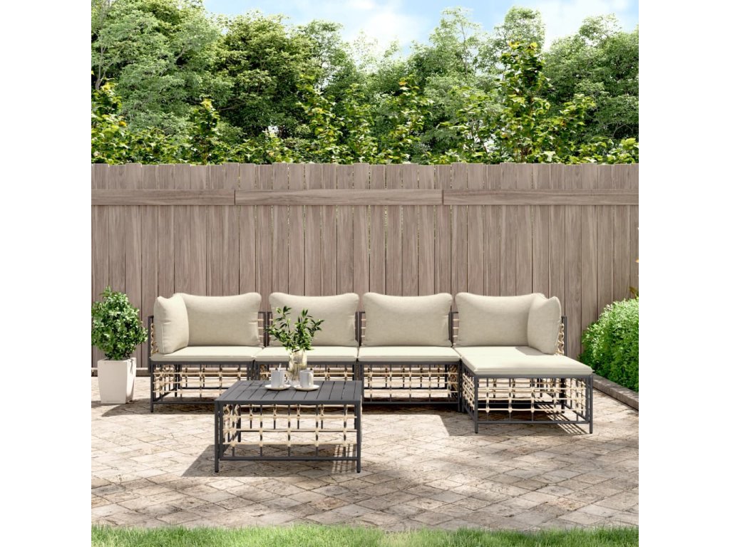 6dílná zahradní sedací souprava s poduškami antracit polyratan 3186744