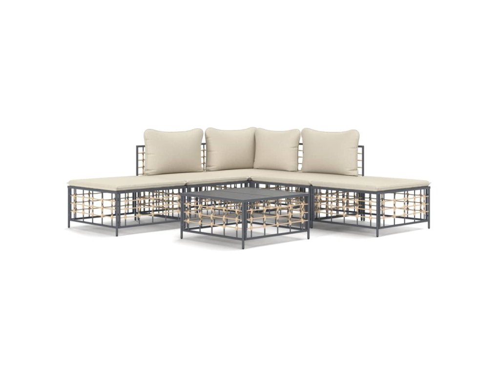 6dílná zahradní sedací souprava s poduškami antracit polyratan 3186758