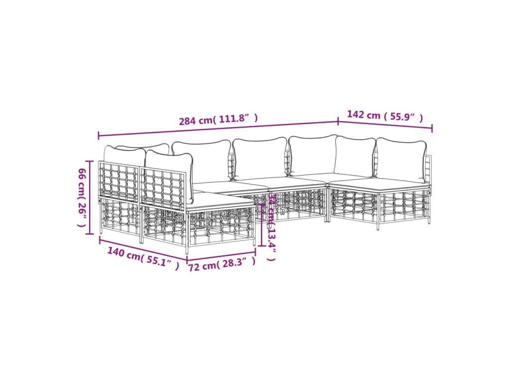6dílná zahradní sedací souprava s poduškami antracit polyratan 3186786