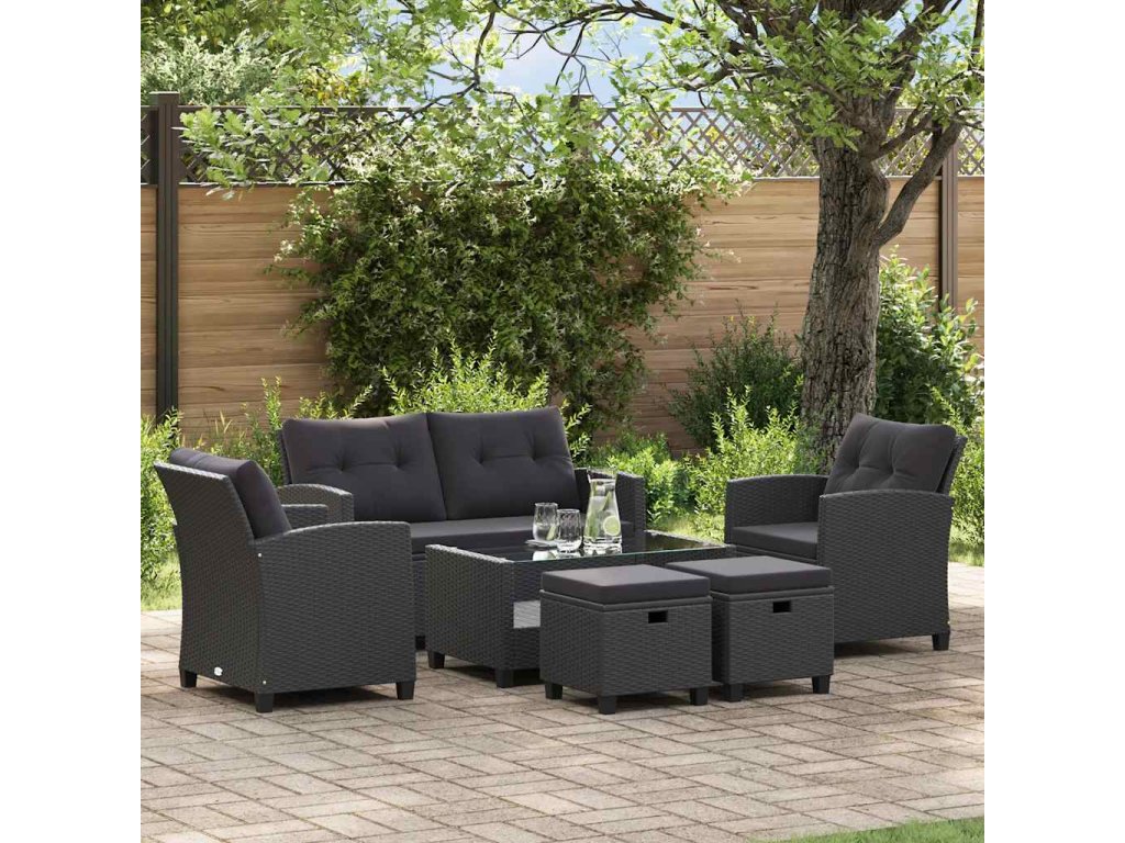 6dílná zahradní sedací souprava s poduškami polyratan černá 46151