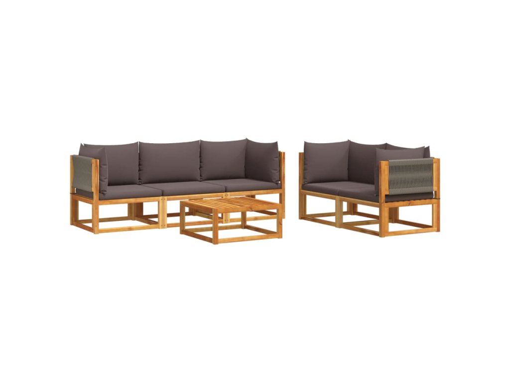 6dílná zahradní sedací souprava s polštáři, akácie a provaz 3278833