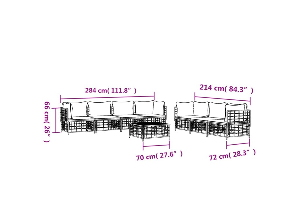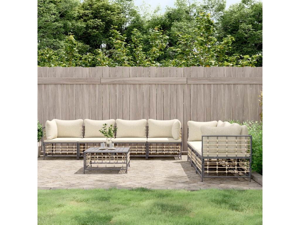 8dílná zahradní sedací souprava s poduškami antracit polyratan 3186706