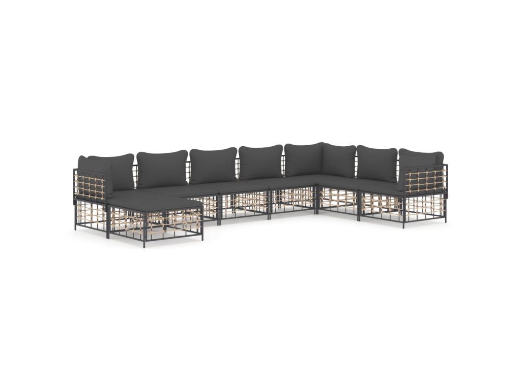 8dílná zahradní sedací souprava s poduškami antracit polyratan 3186791