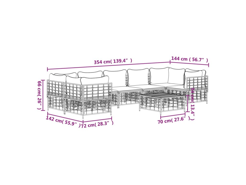 8dílná zahradní sedací souprava s poduškami antracit polyratan 3186802