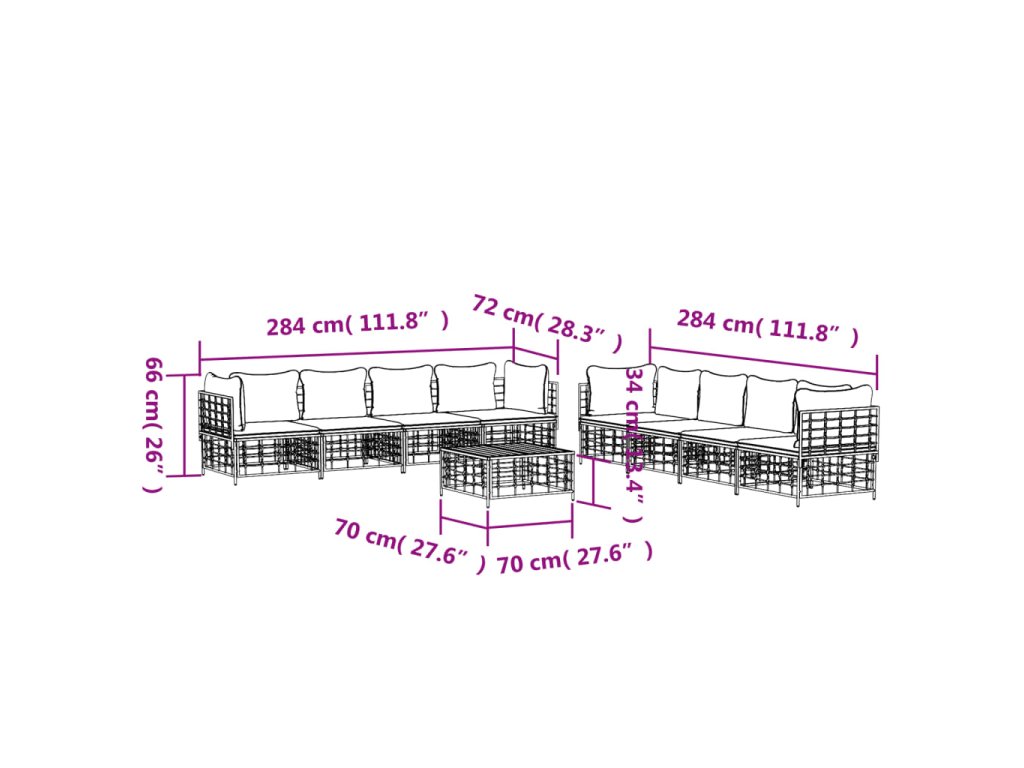 9dílná zahradní sedací souprava s poduškami antracit polyratan 3186708