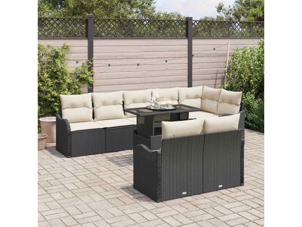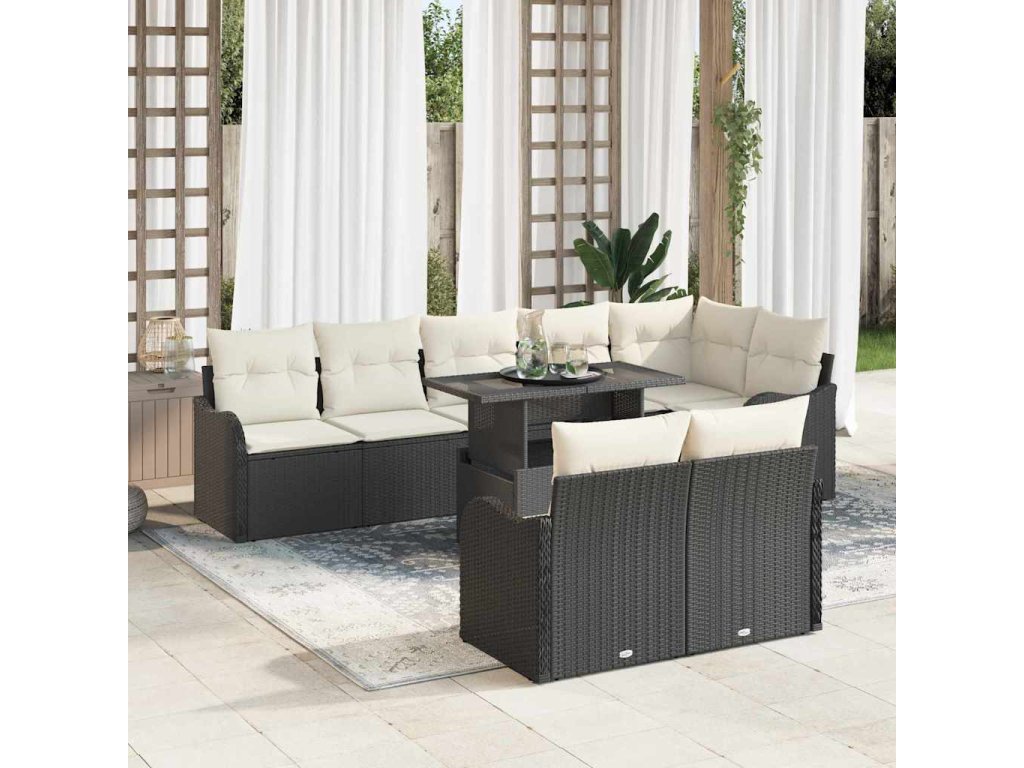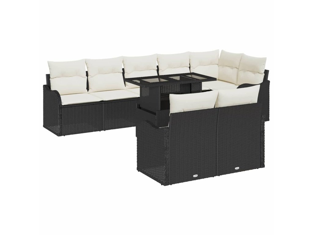Odpočinková sada s polštářem 9 pcs Černá Poly ratan 3348483