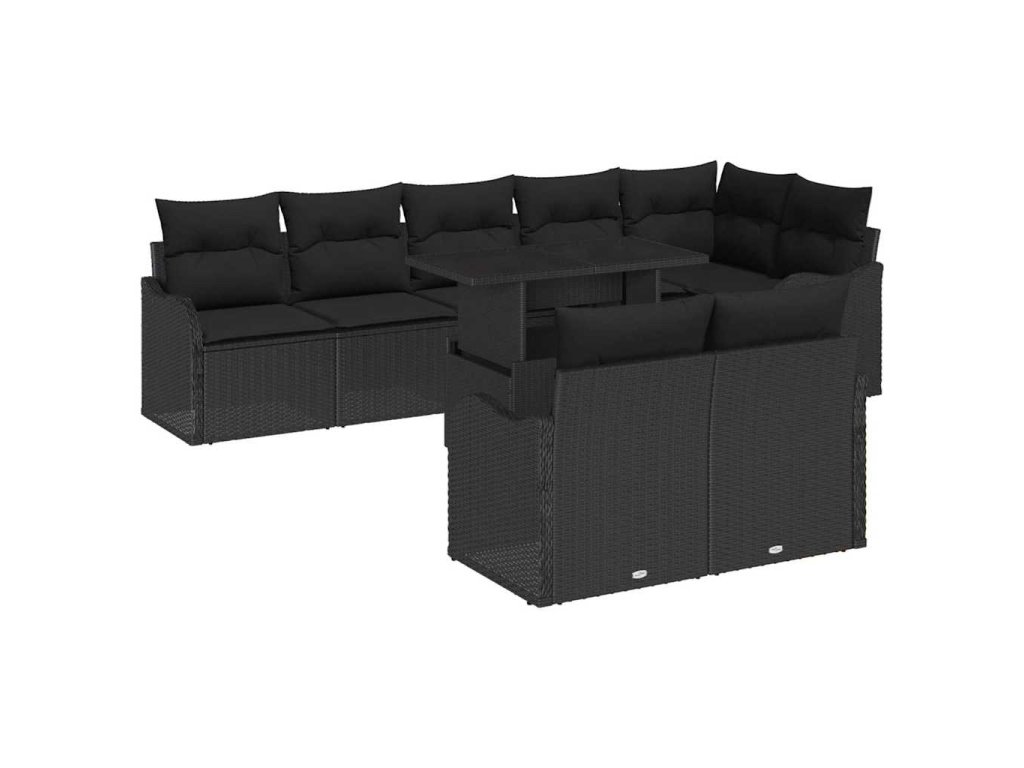 Odpočinková sada s polštářem 9 pcs Černá Poly ratan 3348489