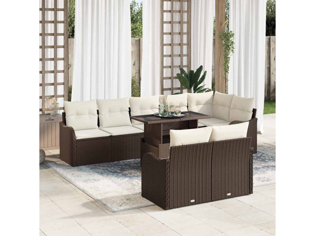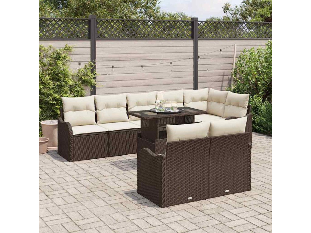 Odpočinková sada s polštářem 9 pcs Hnědá Poly ratan 3348484