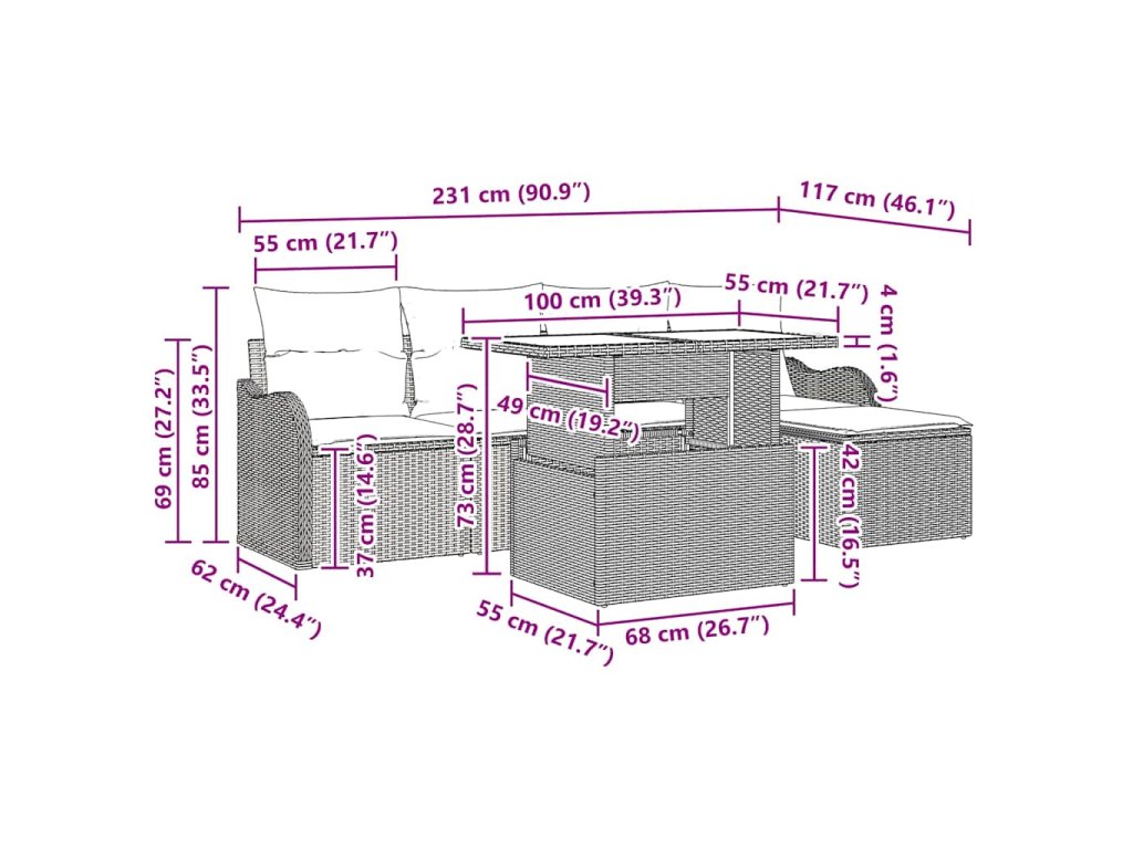 - Materiály odolné vůči počasí: Tato souprava je vyrobena z poly ratanových a polyesterových látek, které jsou UV ochranné a odolné vůči vyblednutí, takže si užiješ krásné venkovní chvíle po mnoho sezón. Nakombinované materiály zajišťují nejen dlouhou životnost, ale i styl.