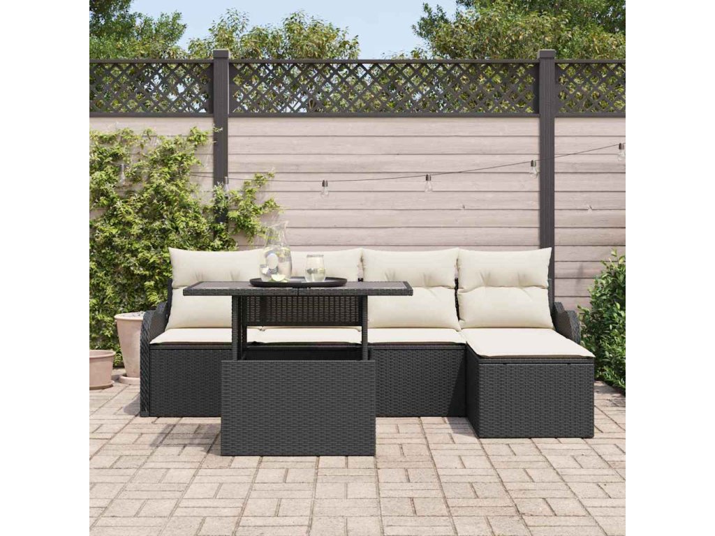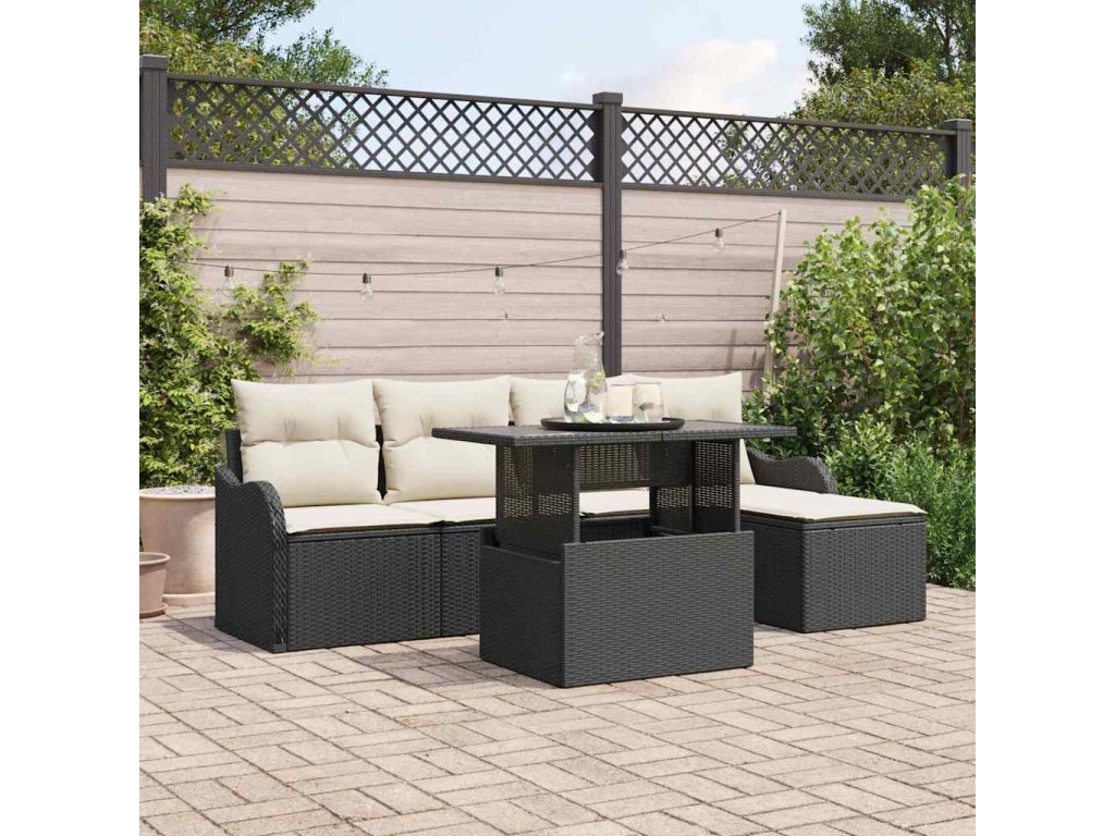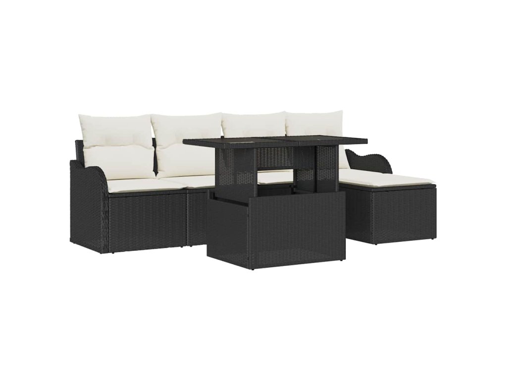 Sada venkovního sezení s polštářem 6 pcs Černá Poly ratan 3348443