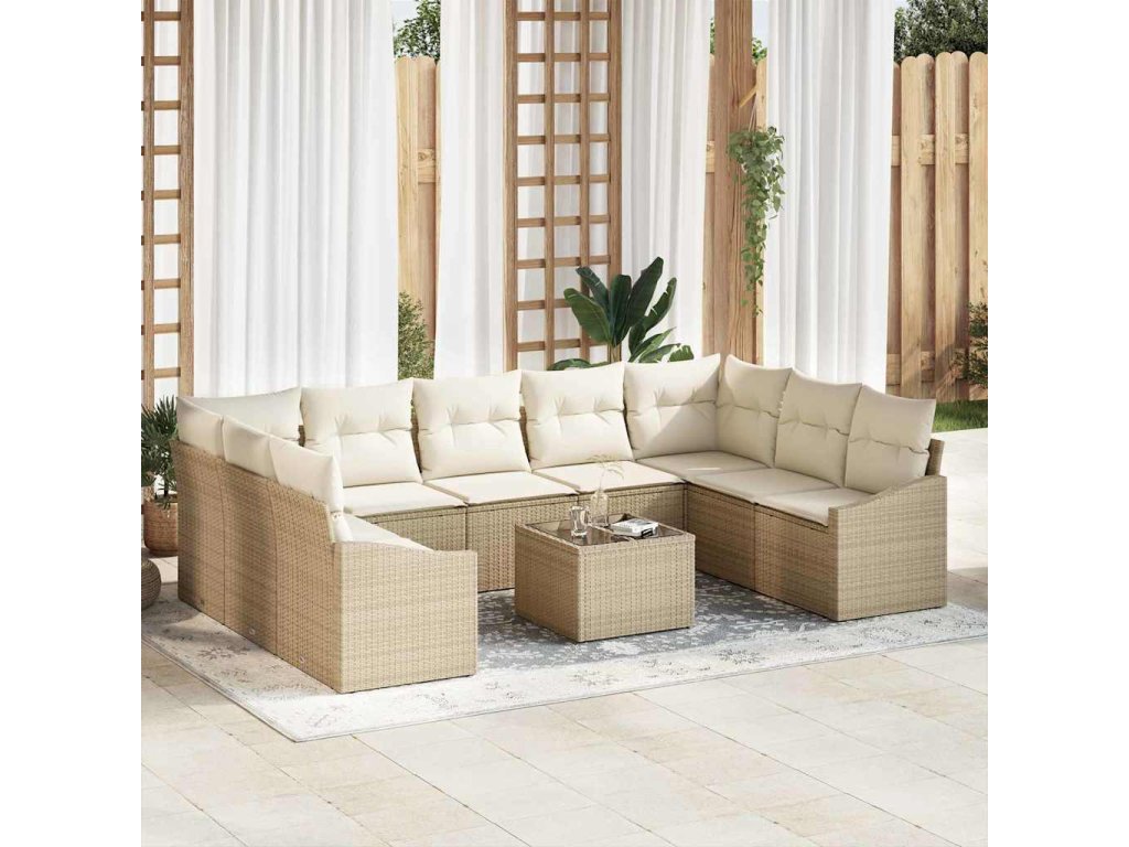 Sada zahradních pohovek 10 pcs Béžová Poly ratan 3346891