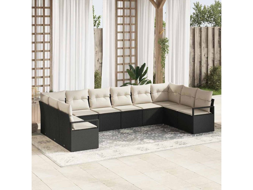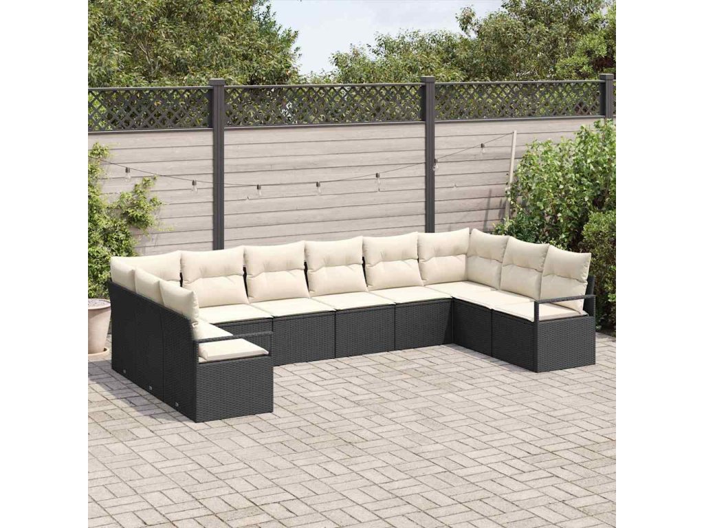 Sada zahradních pohovek 10 pcs Černá a bílá polyratan 3355226