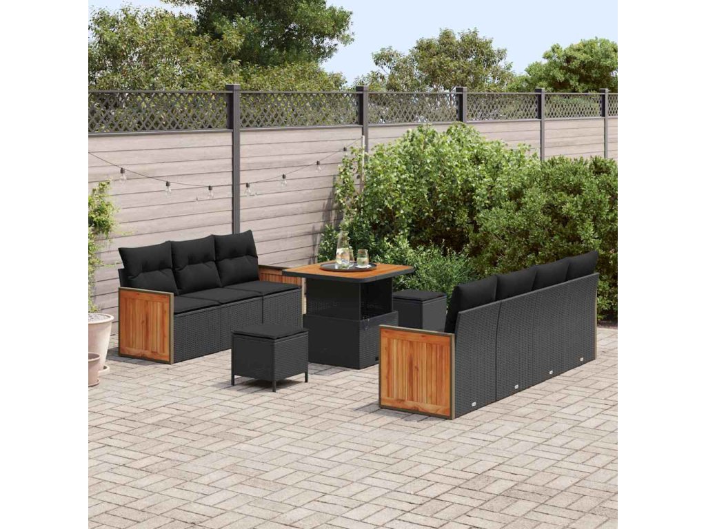 Sada zahradních pohovek 10 pcs Černá a hnědá polyratan 3365214