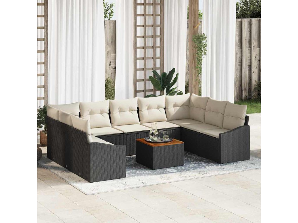 Sada zahradních pohovek 10 pcs Černá a krémová polyratan 3356542