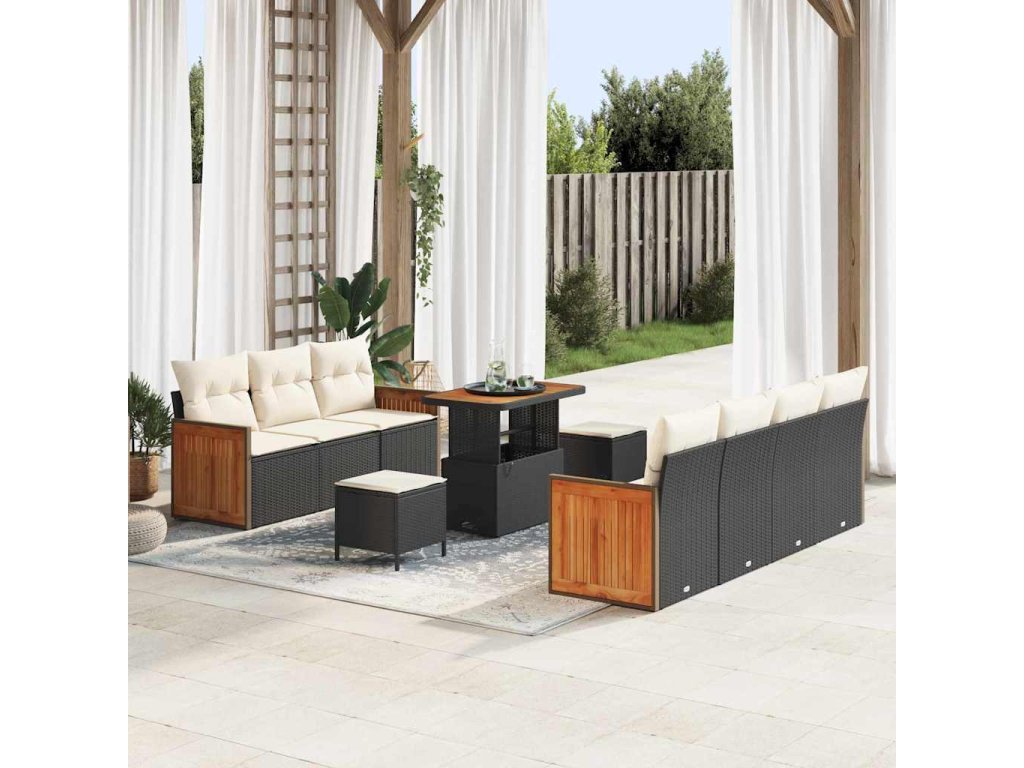 Sada zahradních pohovek 10 pcs Černá a krémová polyratan 3365220