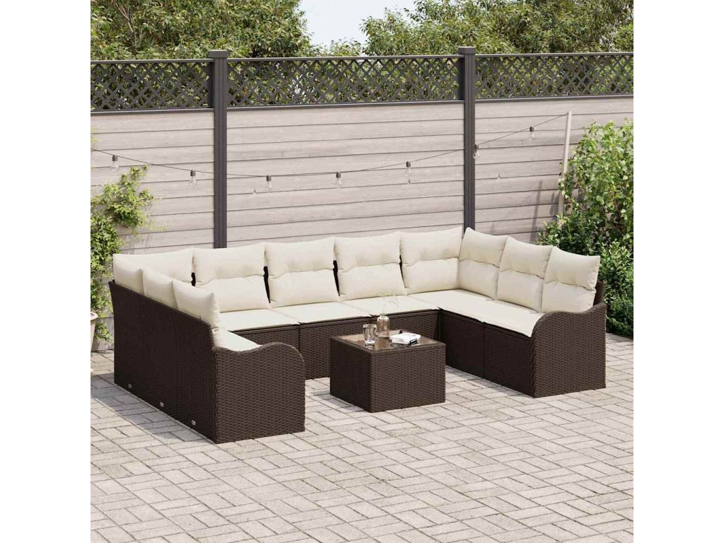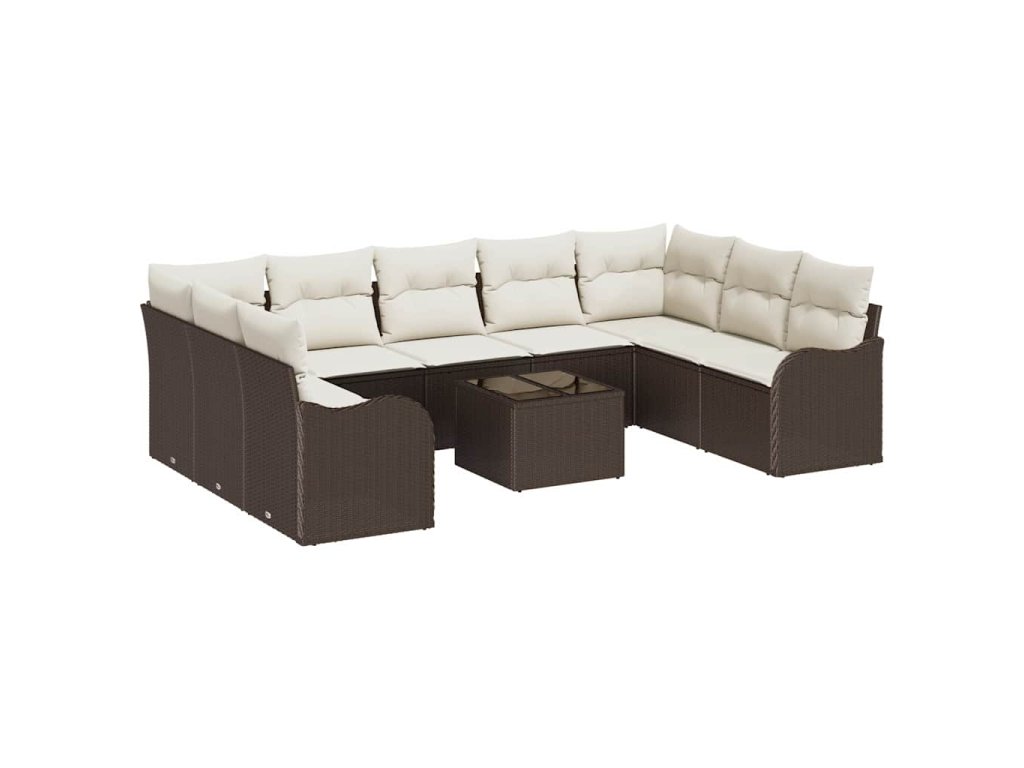 Sada zahradních pohovek 10 pcs Hnědá a bílá Poly ratan 3354537